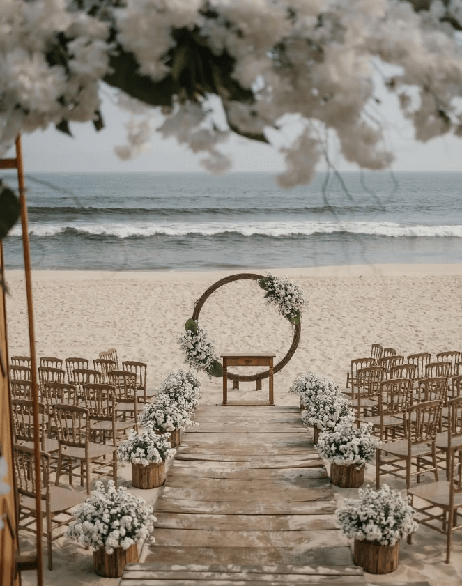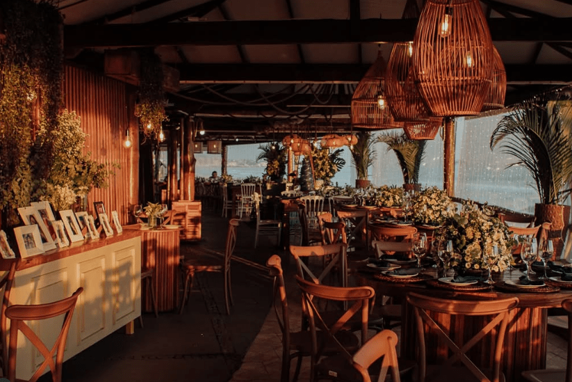 Nosso casamento será à beira-mar, com a cerimônia realizada na areia, ao pôr do sol. Em seguida, a festa acontecerá em um espaço coberto e estruturado — o quiosque Som do Mar, com toda a comodidade de um salão de festas.